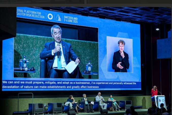 Hans Sy speaking in the 8th Session of the Global Platform for Disaster Risk Reduction (GP2025), organized by the UN Office for Disaster Risk Reduction and co-chaired by the Government of Switzerland.